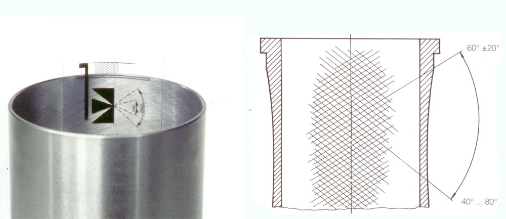 Для надёжного удержания масла на поверхности цилиндра, стенка последнего должна иметь определённую шероховатость абсолютно гладкая стенка не способна удержать на себе масло, в количестве необходимом для нормальной смазки колец. С абсолютно гладкой, зеркальной, поверхности масло будет сниматься почти полностью, оставшееся масло будет сгорать, а нового масла, необходимого для нормальной смазки поступать не будет. Таким образом будут формироваться условия для сухого трения, которое вызывает повышенный износ. Поверхность, обладающая высокой шероховатостью, способна значительно лучше задерживать на себе масло и соответственно воспринимать более высокие механические нагрузки. Низкая шероховатость удерживает масло несколько хуже. Больший угол хонингования влияет на расход масла (угар), но в этом случае меньше проявляется волнистость поверхности цилиндра. Маленький угол влияет на снижение расхода масла. Вот такие закономерности. Поэтому требуется подбор режимов хонингования и применяемых материалов, которые и обеспечивают необходимый результат.